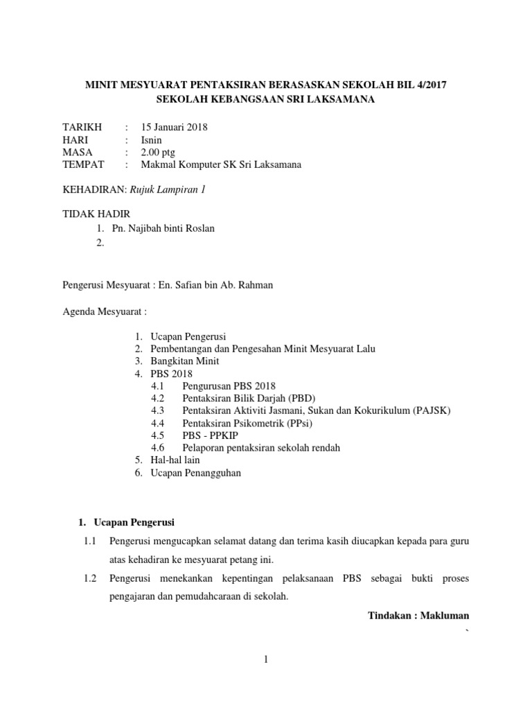 Minit Mesyuarat Pbs 1 2018 Pdf